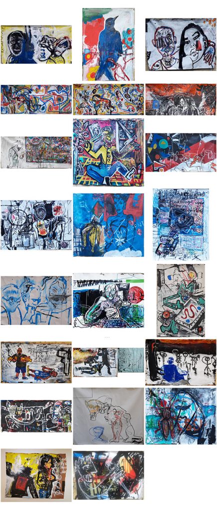 Der Maler aus Kirkel (der Zweibrücker Kunstverein hat viele Mitglieder aus dem Saarland erklärt, wie er vorgegangen ist: „Ich habe zuerst Notre Dame und die anderen großen Bauwerke gemalt, dann habe ich sie abgeklebt und die anderen Elemente gemalt, die mir fehlten. Ich habe gemalt, mit dem Pinsel, mit den Fingern, auch mal die Farbe mit dem Kamm gezogen für die Muster, bin mit der Rolle drüber und habe das Zugeklebte wieder abgezogen, wie man an manchen Stellen sieht.“